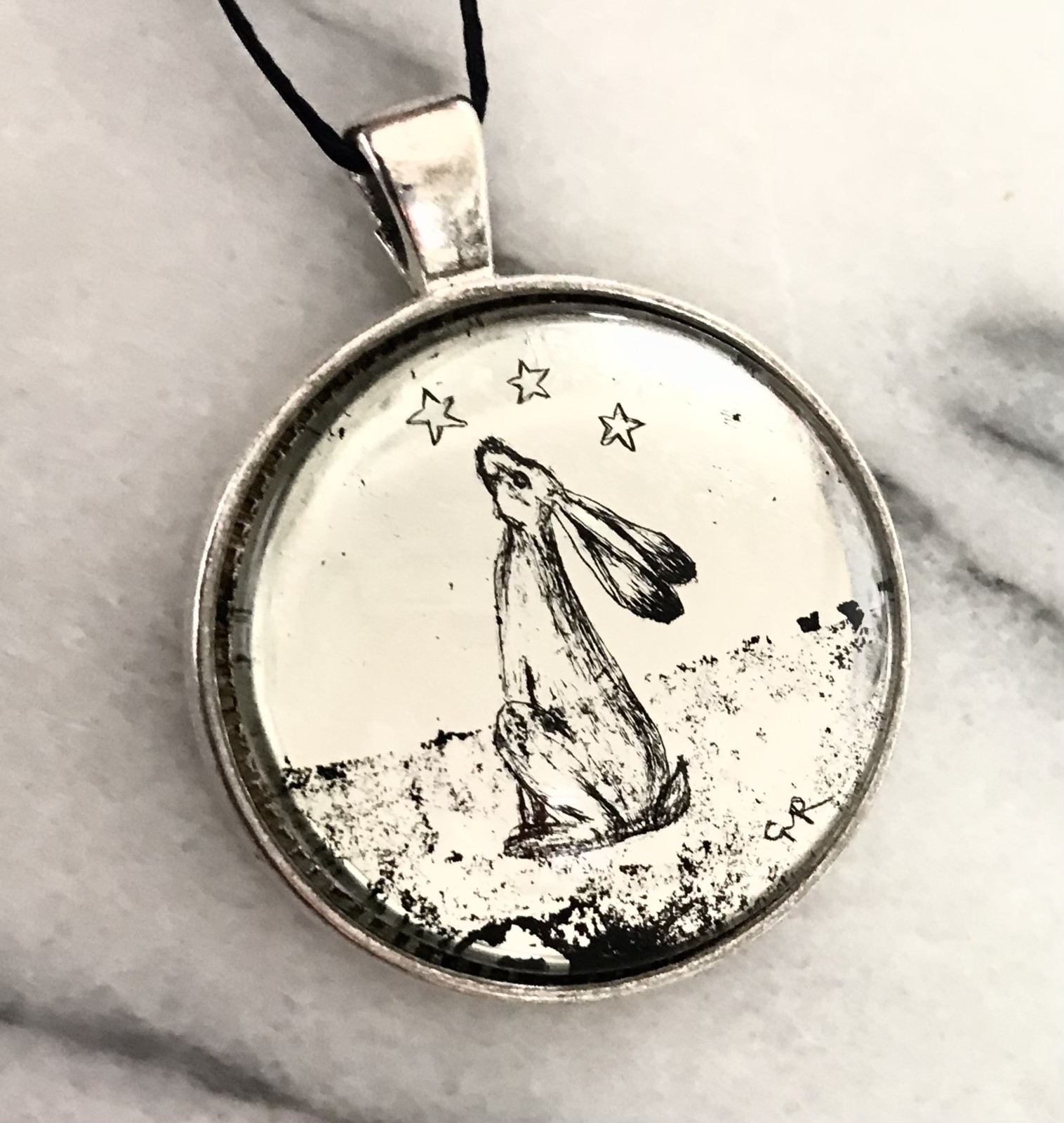 Commission Hare pendant is hand gilded in 7.2ct white gold leaf.