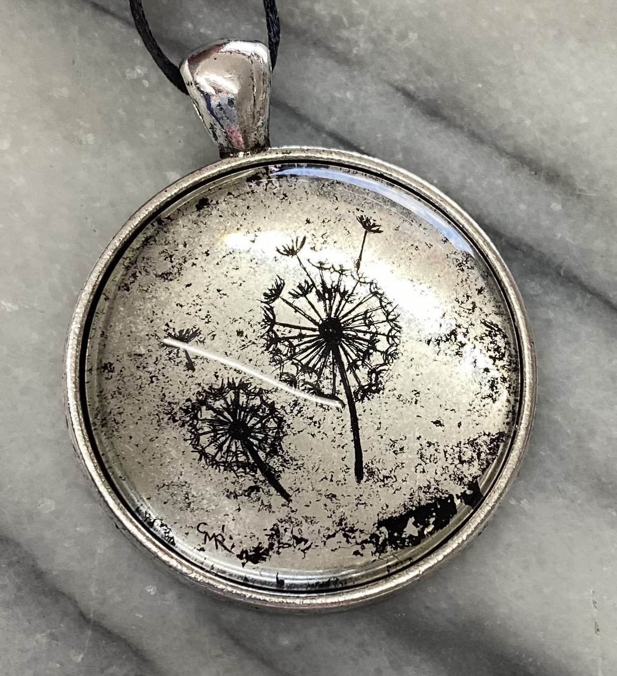 Dandelion Clock pendant is hand gilded in 7.2ct white gold leaf.
