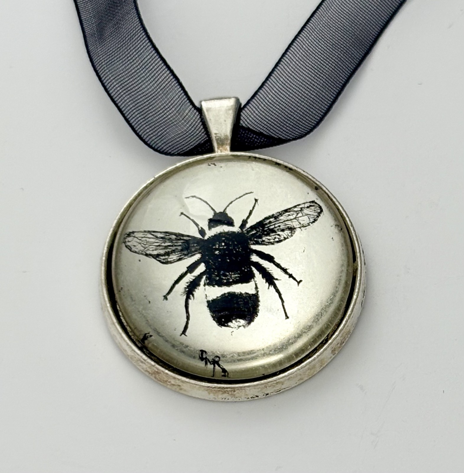 Bumble Bee pendant is hand gilded in 7.2ct white gold leaf.