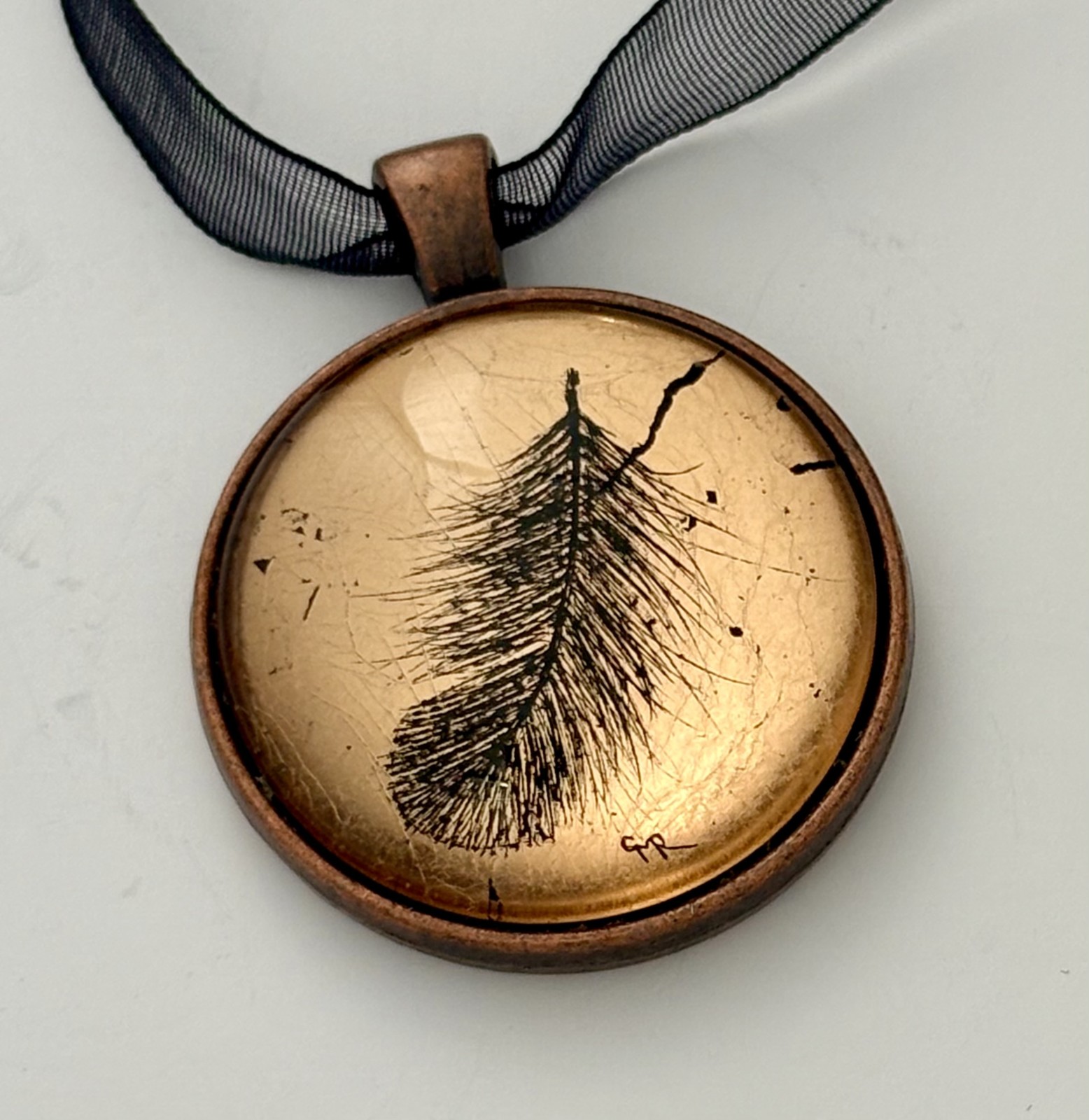 Fluffy feather pendant is hand gilded in 22ct rose gold leaf.