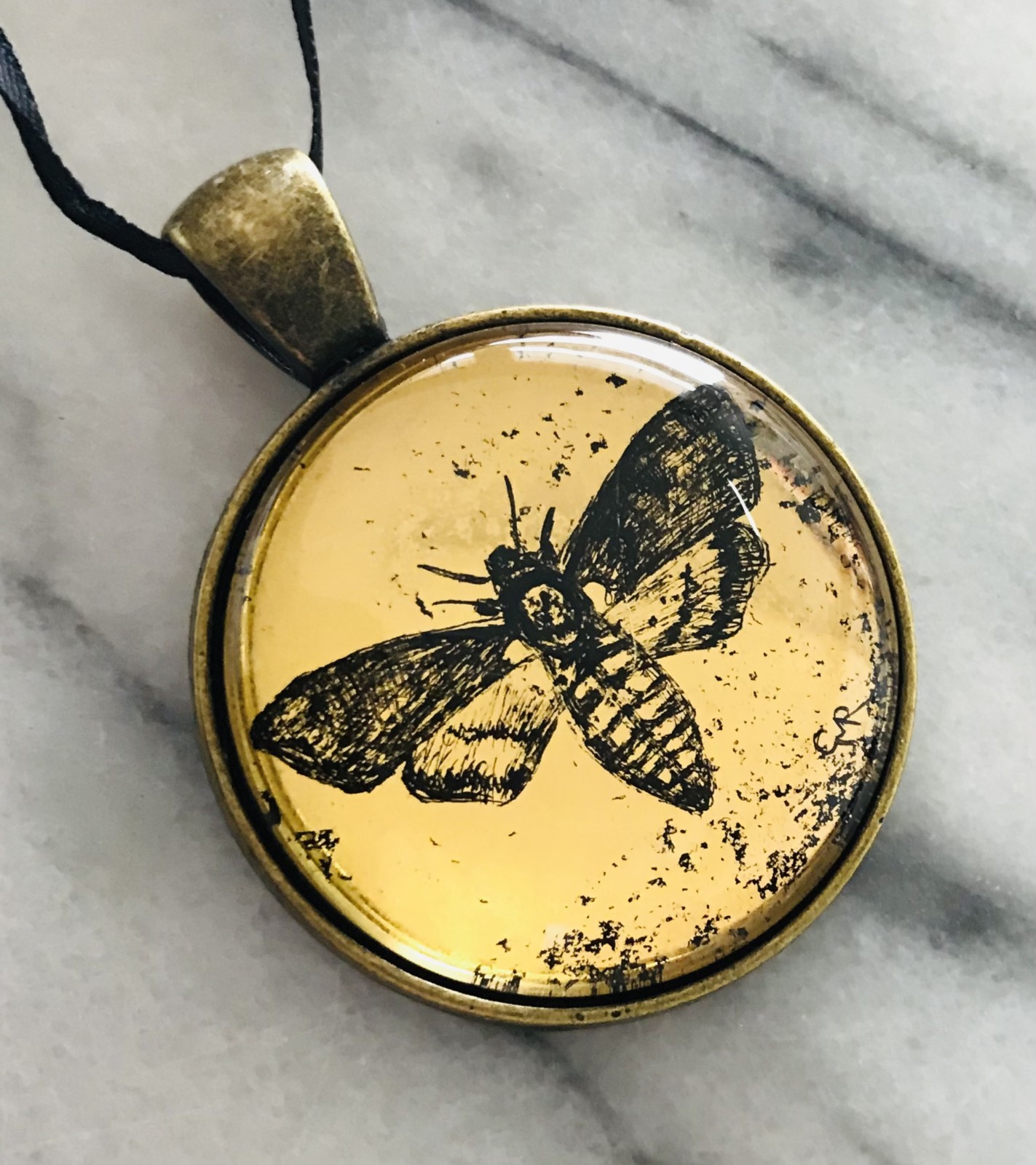Deaths Head Hawkmoth pendant is hand gilded in 23¾ct Egyptian gold leaf.