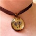 3cm diameter, domed cabochon is hung on a 1cm(w) x 60cm(L) black organza ribbon. (can also be worn on a chain of your own, not included)