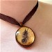 3cm diameter, domed cabochon is hung on a 1cm(w) x 60cm(L) black organza ribbon. (can also be worn on a chain of your own, not included)